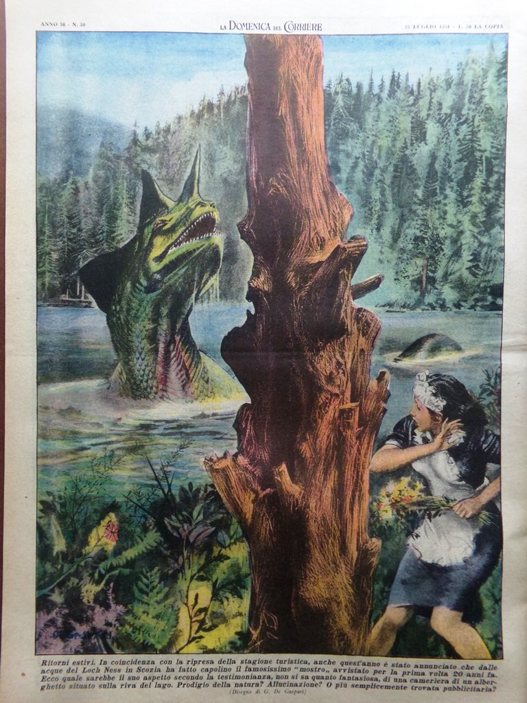 La Domenica del Corriere 25 Luglio 1954 Mostro Loch Ness Freud Ruggeri Braglia