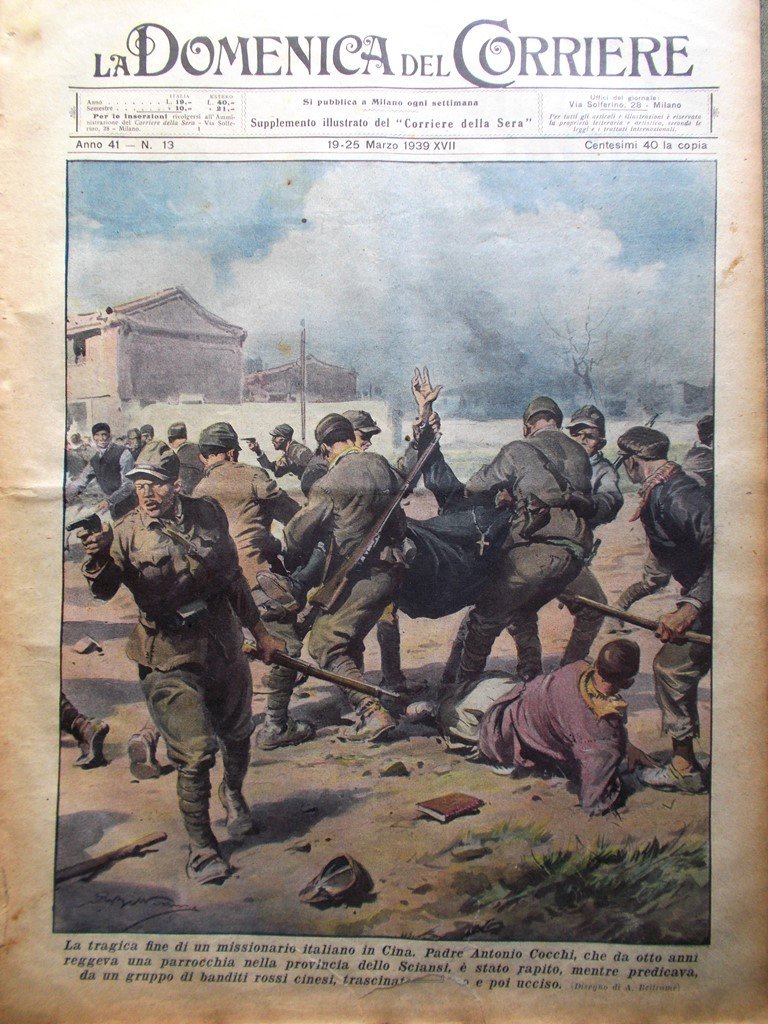 La tragica fine di un missionario italiano in Cina. Padre Antonio Cocchi, che da otto anni reggeva una parrocchia nella provincia dello Sciansi, è stato rapito, mentre predicava, da un gruppo di banditi rossi cinesi, trascinato lontano e poi ucciso (Achille Beltrame)