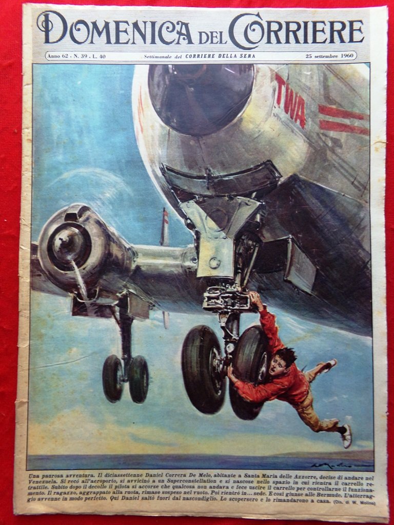 Il diciassettenne Daniel Carrera De Melo, abitante a Santa Maria delle Azzorre, decise di andare nel Venezuela. Si recò all'aeroporto e si nascose nello spazio in cui rientra il carrello retrattile di un aereo. Subito dopo il decollo il pilota si accorse che qualcosa non andava e fece uscire il carrello. Il ragazzo, aggrappato alla ruota rimase sospeso nel vuoto, poi rientrò in seede. Alle Bermude saltò fuori dal nascondiglio ma fu scoperto e rimandato a casa (Walter Molino)