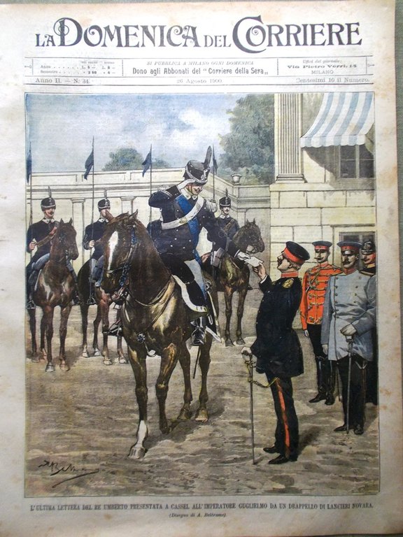 L'ultima lettera del re Umberto presentata a Cassel all'imperatore Guglielmo da un drappello di lancieri Novara (Achille Beltrame)