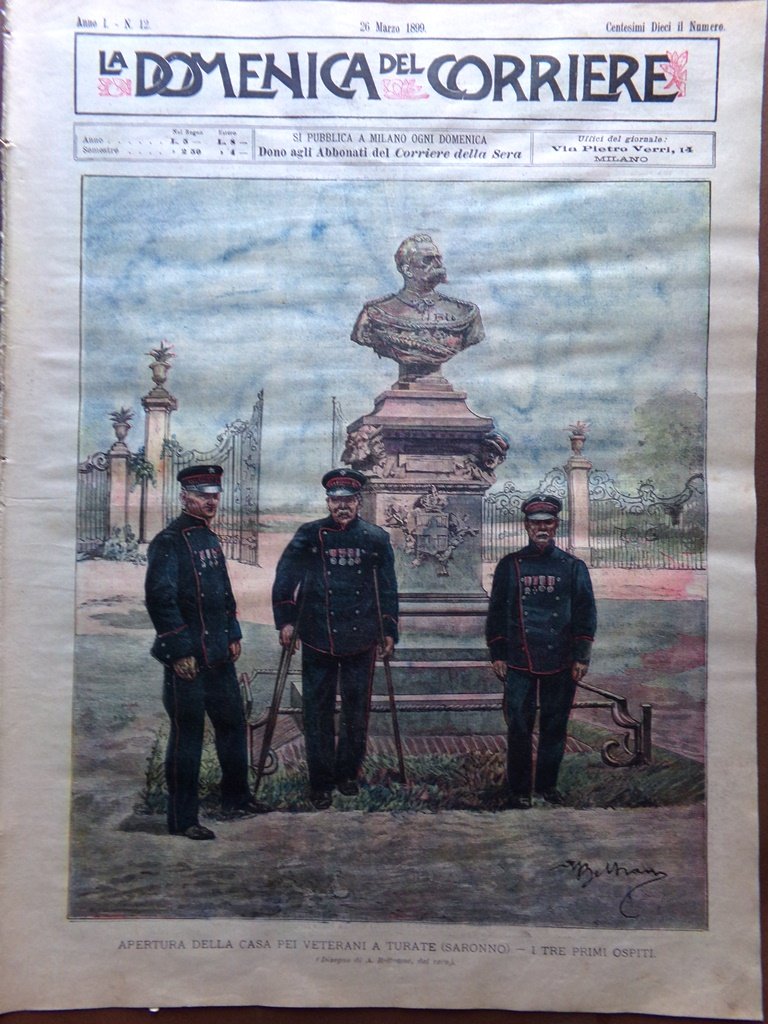 La Domenica del Corriere 26 Marzo 1899 Casa Veterani Turate Rhodes Italia Cina