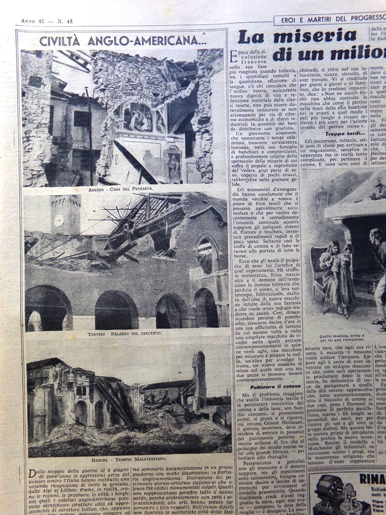 La Domenica del Corriere 26 Novembre 1944 WW2 Arezzo Treviso Rimini Marionette