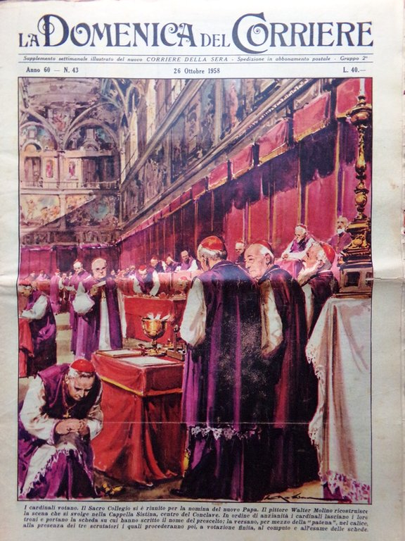 La Domenica del Corriere 26 Ottobre 1958 Papi Beltrame Conclave Pioneer I Luna