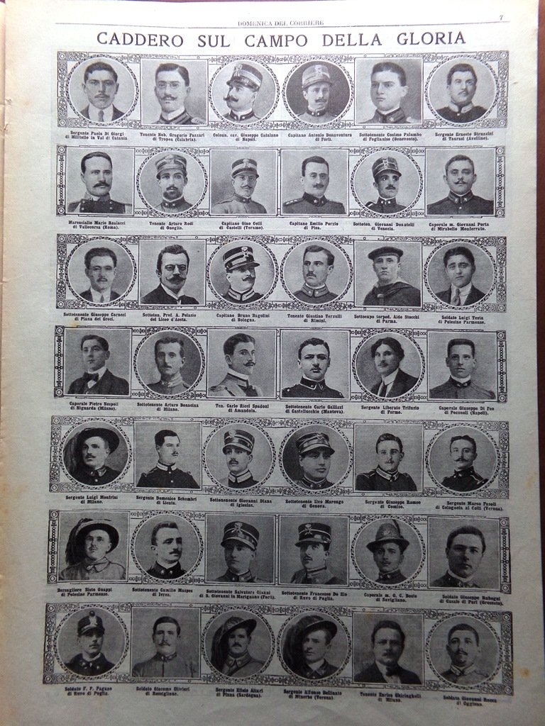 LA DOMENICA DEL CORRIERE Rivista Originale del 26 Settembre 1915 Anno 17 nr. 39 pagine: 16 dimensioni: 38 x 28 cm IN PRIMA PAGINA: La nostra artiglieria disperde una colonna in marcia da Varda verso Corvara, nell'Alto Cordevole (Achille Beltrame) NELL'ULTIMA PAGINA: Come, nella zona di Pavia, fu respinto un tentativo di nuclei austriaci portati da Gorizia con un treno blindato (Achille Beltrame) ALL'INTERNO: Caddero sul campo della gloria (fotografie) La nostra guerra fra le nevi Artiglieri e bersaglieri La morte di Donna Laura Minghetti La guerra sulle Dolomiti Il Re a Cortina d'Ampezzo L'ospedale nella reggia, al Quirinale CONDIZIONI DELLA RIVISTA: BUONE, NORMALI SEGNI DEL TEMPO, SOVRACOPERTINE MANCANTI NOTE PARTICOLARI: LEGGERE MACCHIE DEL TEMPO SULLE COPERTINE