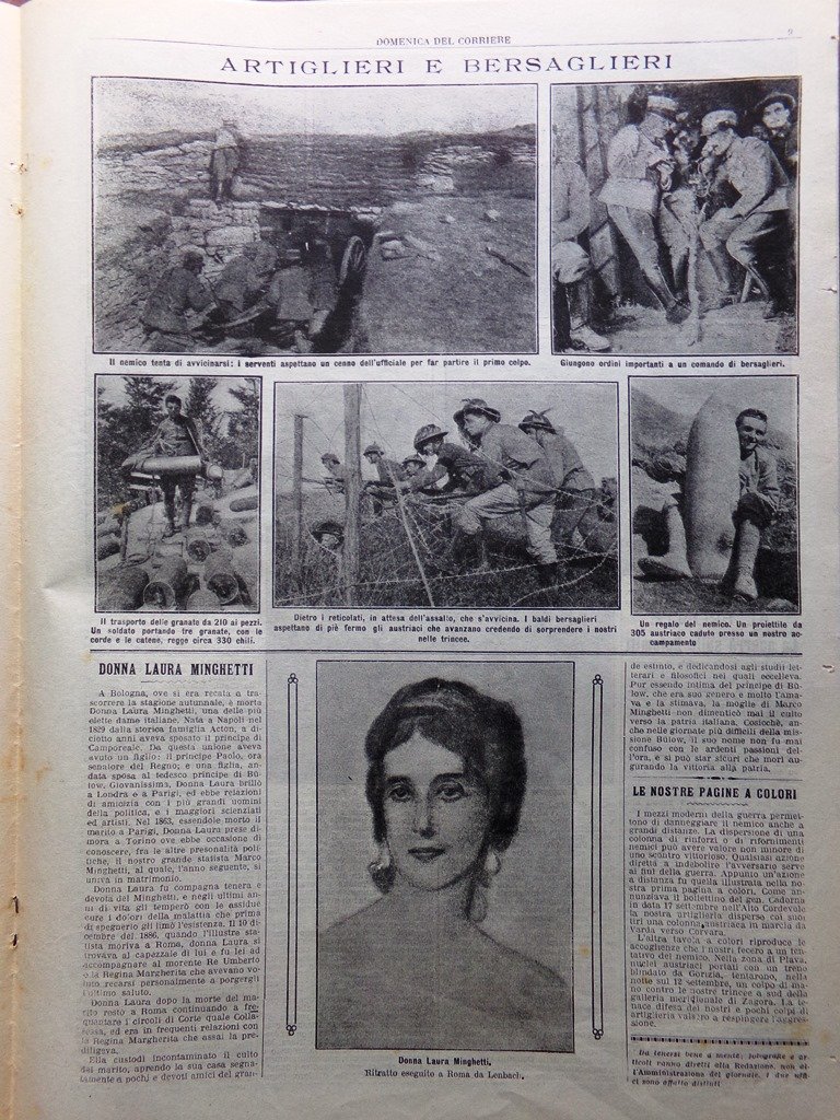 La Domenica del Corriere 26 Settembre 1915 WW1 Laura Minghetti Guerra Dolomiti