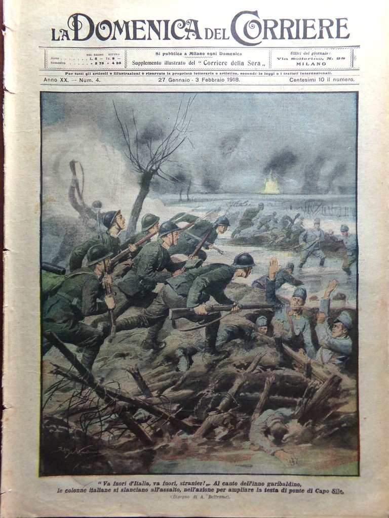 La Domenica del Corriere 27 Gennaio 1918 WW1 Castelnuovo Veneto Lenin Caillaux