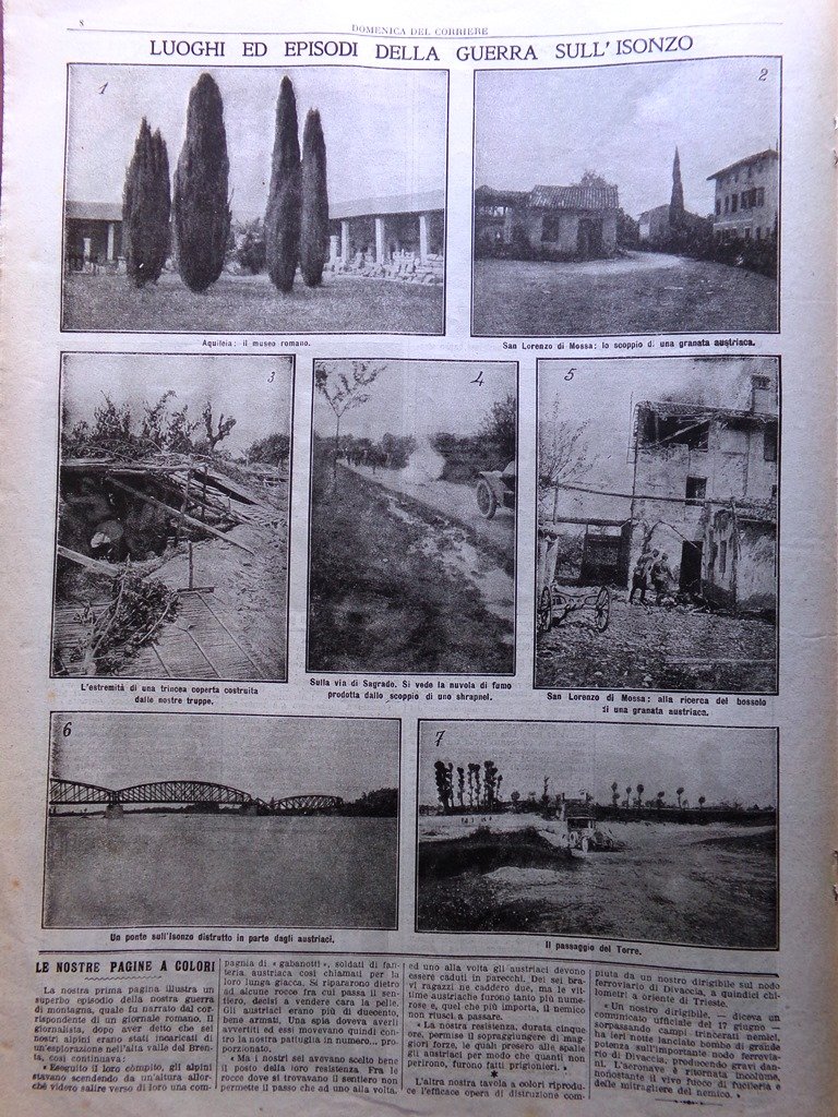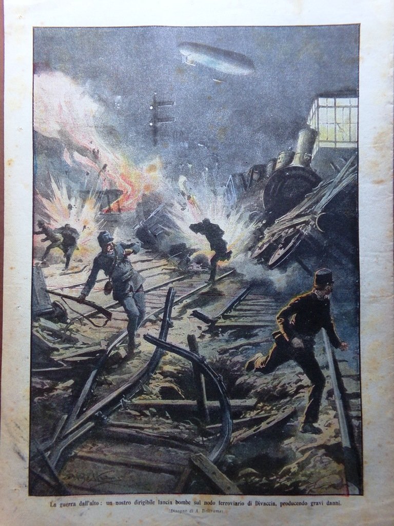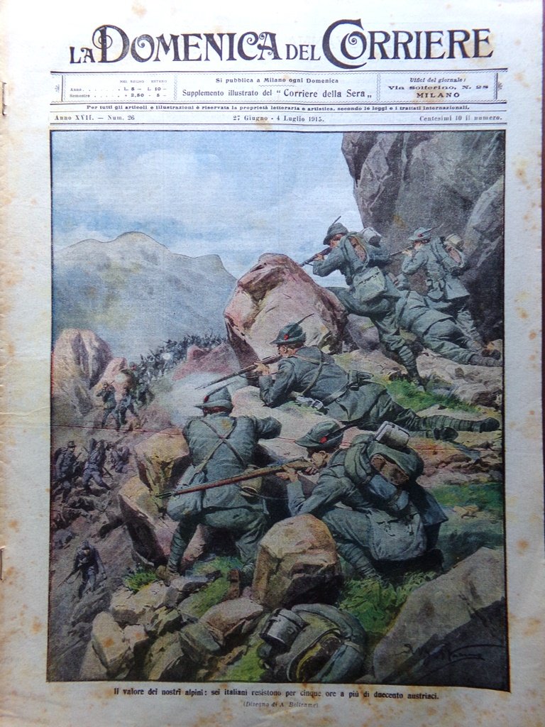 La Domenica del Corriere 27 Giugno 1915 WW1 Alpini Guerra Isonzo Rosa Dirigibile