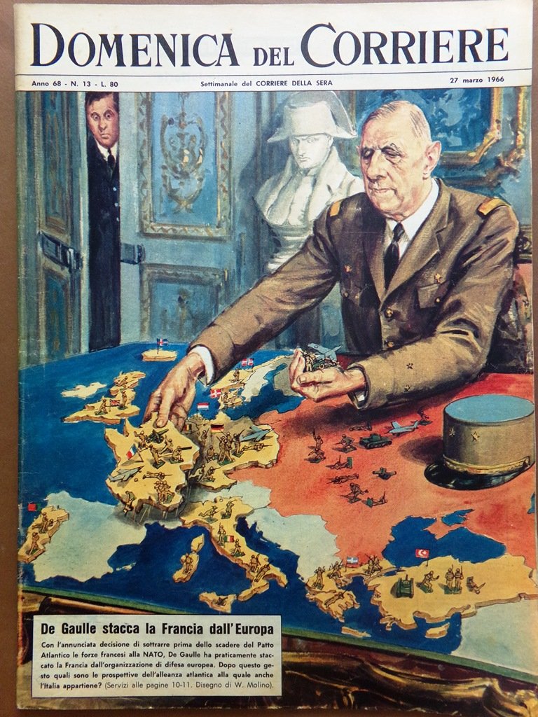 De Gaulle stacca la Francia dall'Europa, togliendo le forze francesi alla NATO prima dello scadere del Patto Atlantico (Walter Molino)
