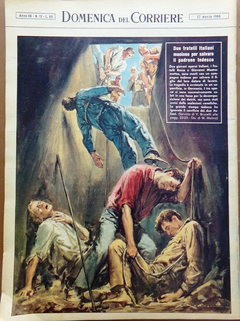 Due fratelli italiani, Rocco e Giovanni Mastromatteo sono morti con un compagno tedesco per salvare il figlio del loro datore di lavoro. La tragedia è avvenuta in un saponificio in Germania. La grande stampa tedesca ha ignorato il sacrificio dei due italiani (Walter Molino)