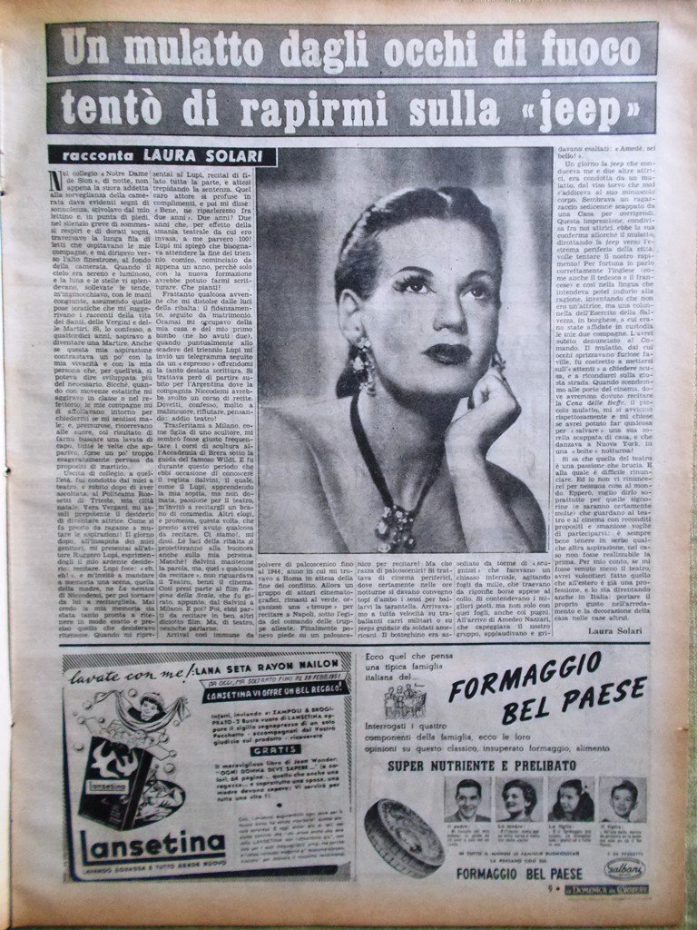 Laura Solari: un mulatto dagli occhi di fuoco tentò di rapirmi sulla "jeep"