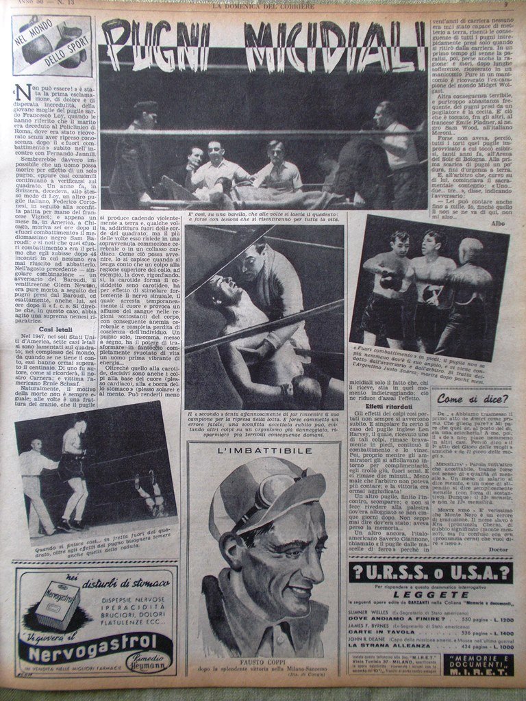 La Domenica del Corriere 28 Marzo 1948 Polo Pasqua Carta Raggi X Boxe Hollywood
