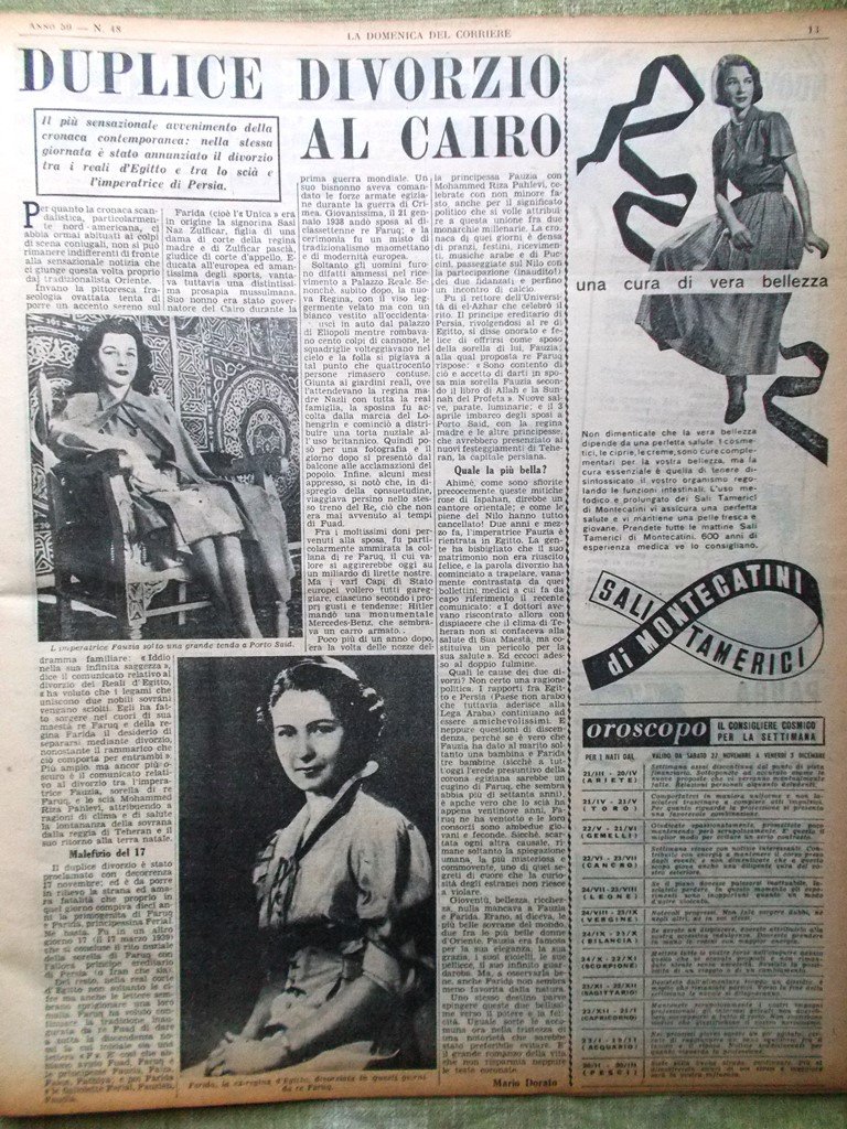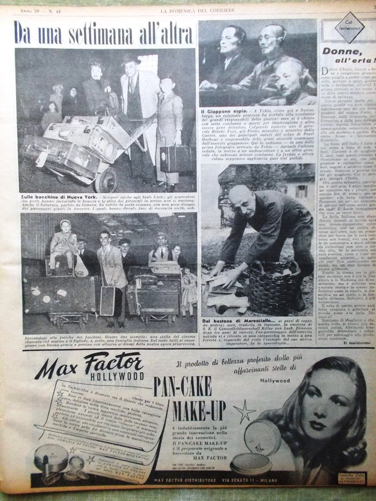 La Domenica del Corriere 28 Novembre 1948 Farida Fauzia Donne Europee Giappone