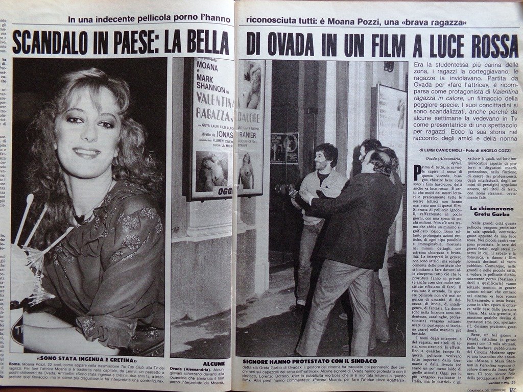 Scandalo in paese per il film di Moana Pozzi a luci rosse.