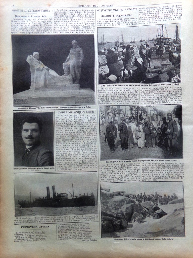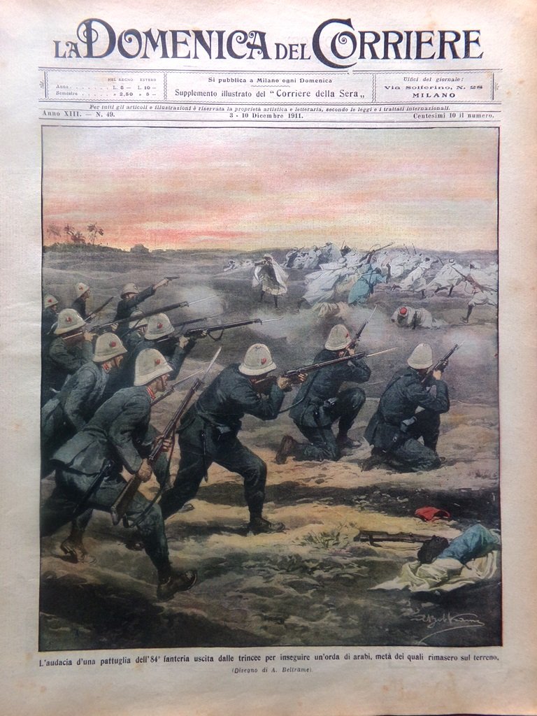 L'audacia di una pattuglia dell'84° fanteria uscita dalle trincee per inseguire un'orda di arabi, metà dei quali rimasero sul terreno (Achille Beltrame)