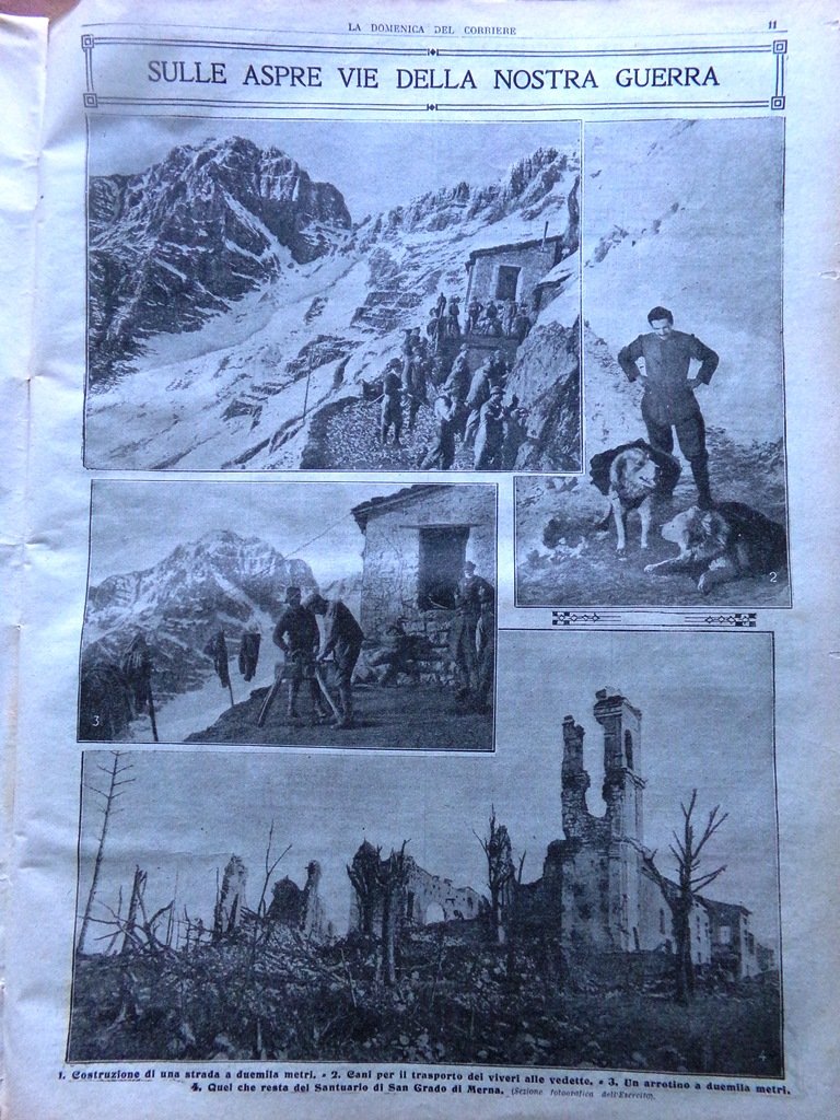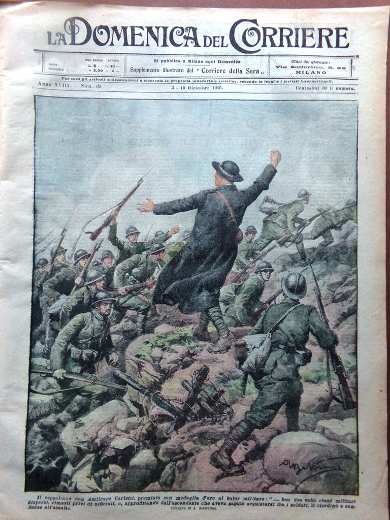 La Domenica del Corriere 3 Dicembre 1916 WW1 Carletti Santuario Merna Carso Armi