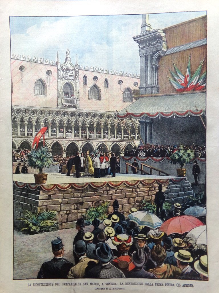 La ricostruzione del campanile di San Marco a Venezia: la benedizione della prima pietra (25 aprile) (Achille Beltrame)