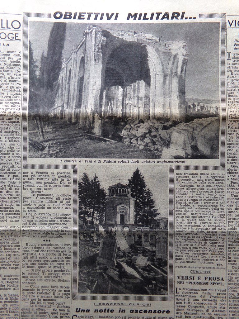 I cimiteri di Pisa e di Padova colpiti dagli aviatori anglo-americani.