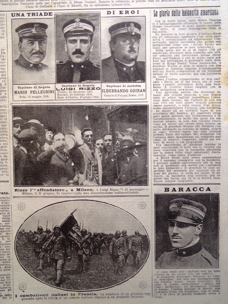 La Domenica del Corriere 30 Giugno 1918 WW1 Baracca Bafile Cosmano Colle Moschin