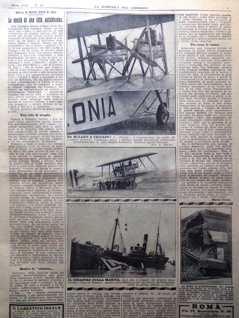 La Domenica del Corriere 30 Giugno 1929 Tragedia Aerea Manica Don Bosco Cimarosa