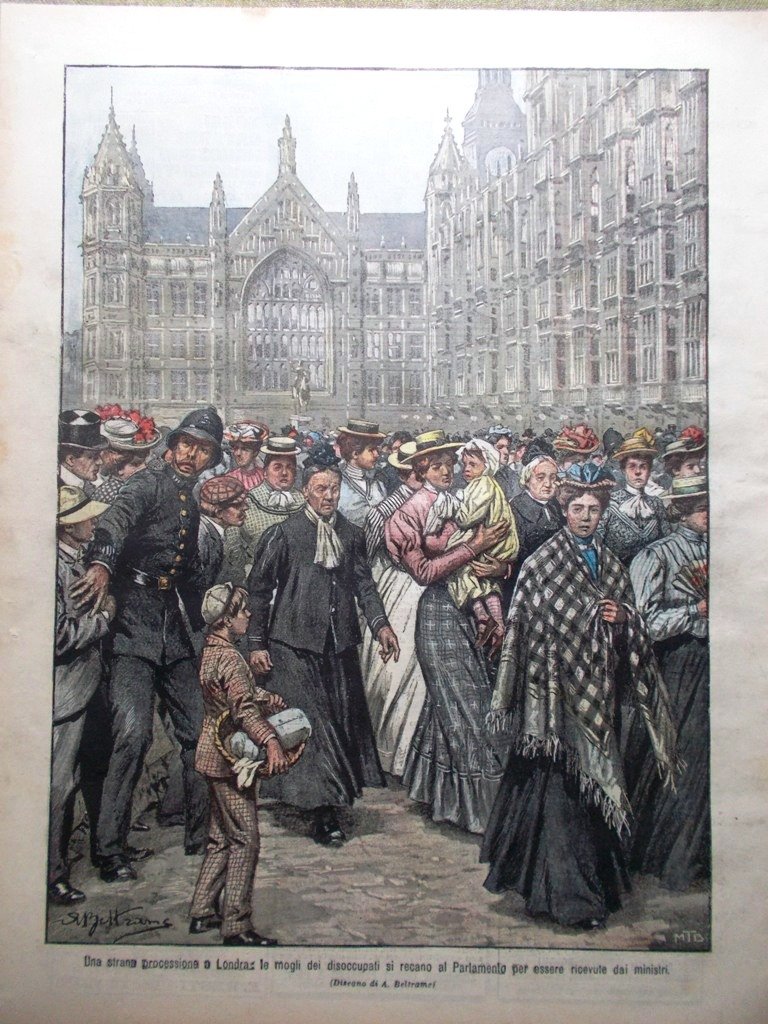 Una strana processione a Londra: le mogli dei disoccupati si recano al Parlamento per essere ricevute dai ministri (Achille Beltrame)