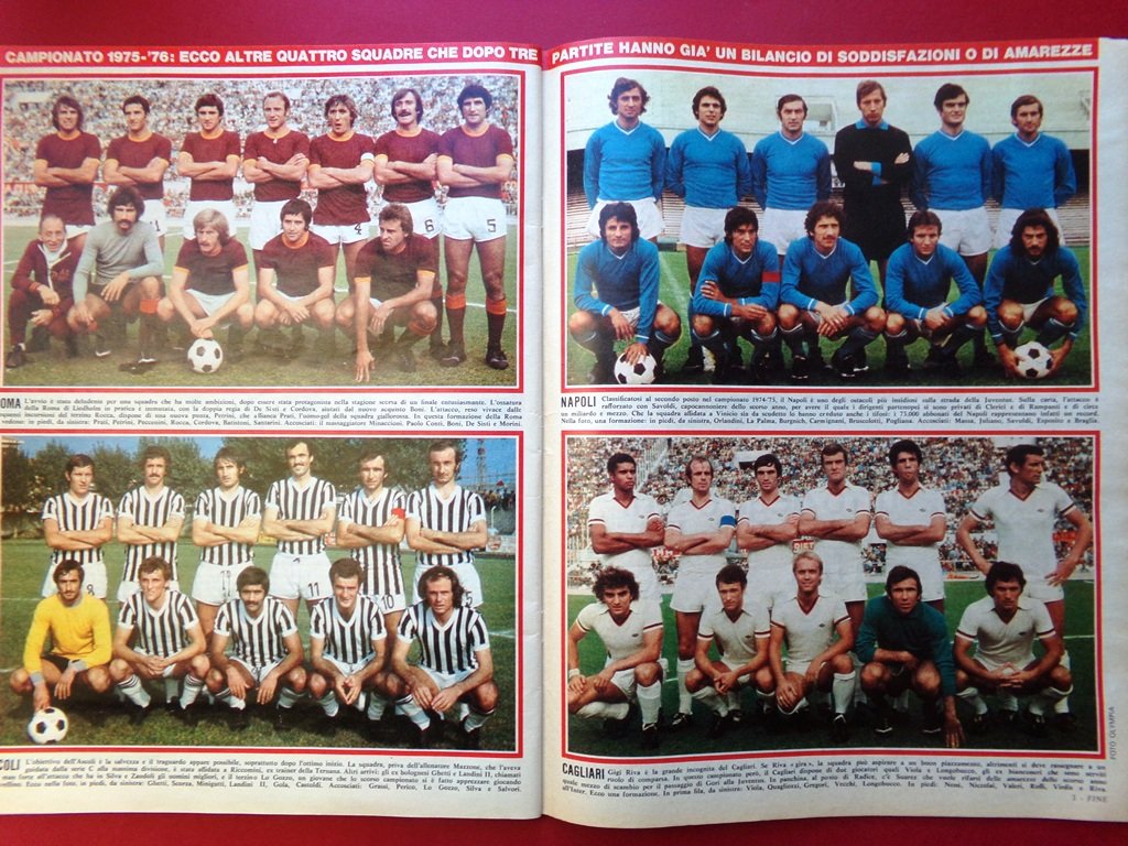 Campionato di Calcio 1975-76: presentiamo tutte le squadre (3^ puntata) - Lazio, Roma, Ascoli, Napoli, Cagliari