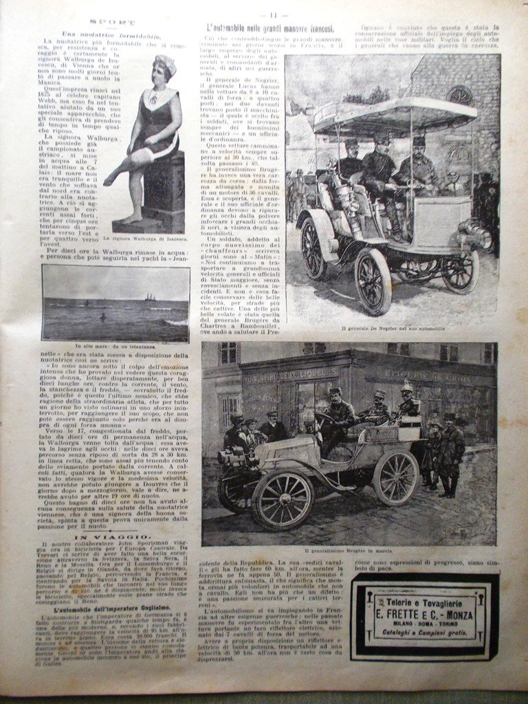 La Domenica del Corriere 30 Settembre 1900 Walpurga von Isacescu Automobile Cina
