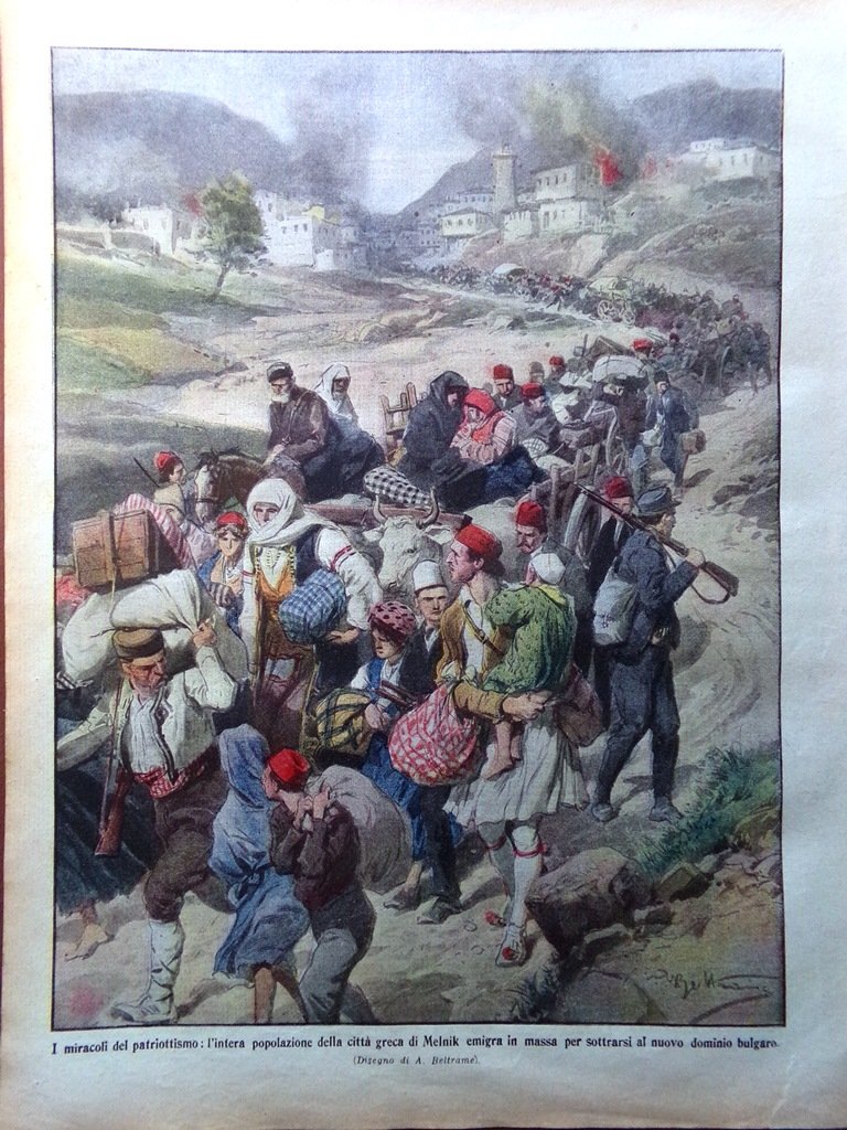I miracoli del patriottismo: l'intera popolazione della città greca di Melnik emigra in massa per sottrarsi al nuovo dominio bulgaro (Achille Beltrame)