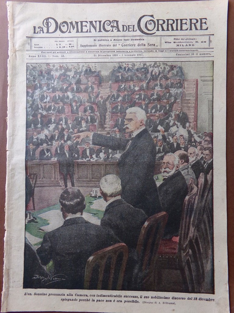 La Domenica del Corriere 31 Dicembre 1916 WW1 Sonnino Natale Rancio Polo Aquile