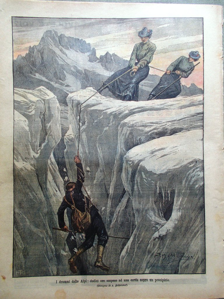 I drammi delle Alpi: dodici ore sospeso ad una corda sopra un precipizio (Achille Beltrame)