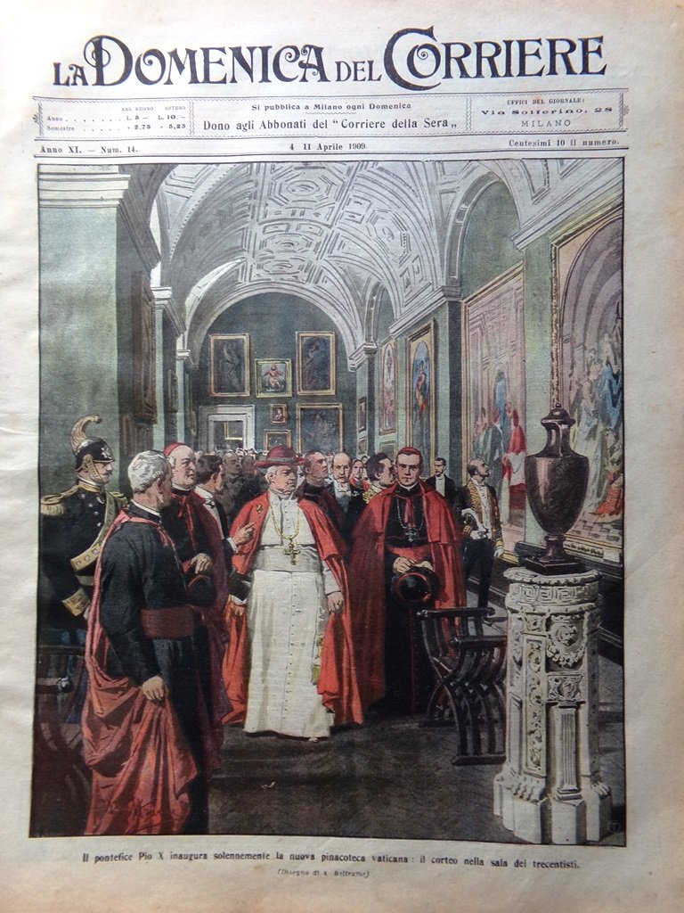 Il pontefice Pio X inaugura solennemente la nuova pinacoteca vaticana: il corteo nella sala dei trecentisti (Achille Beltrame)