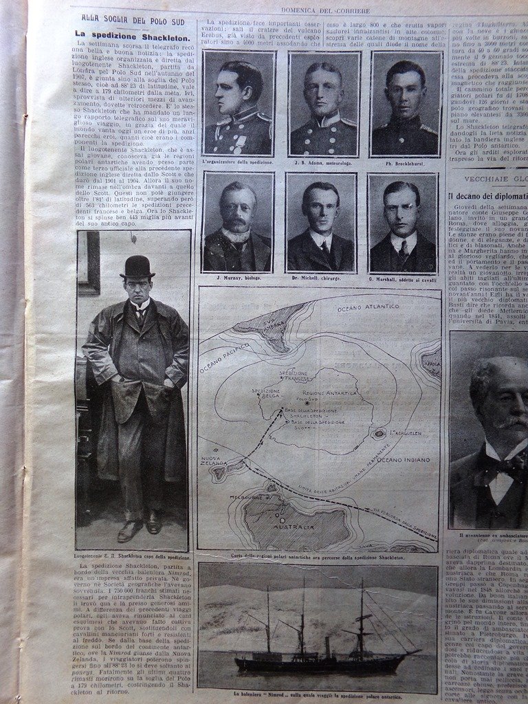 La Domenica del Corriere 4 Aprile 1909 Spedizione Shackleton Von Tann Zeppelin