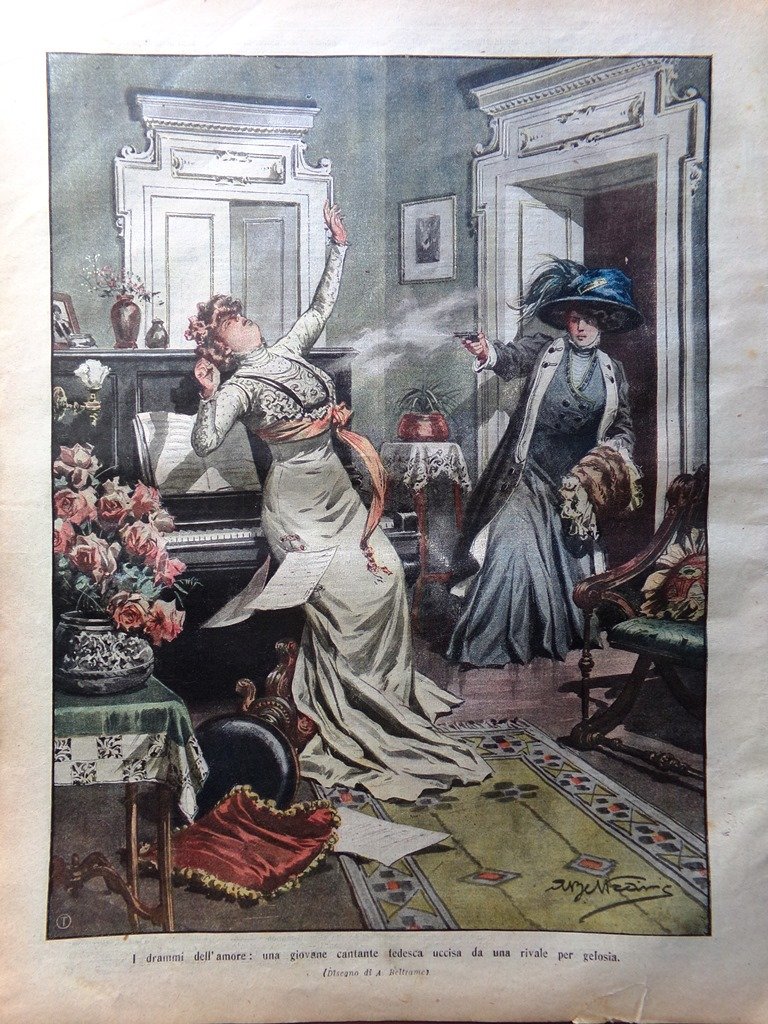 I drammi dell'amore: una giovane cantante tedesca uccisa da una rivale per gelosia (Achille Beltrame)