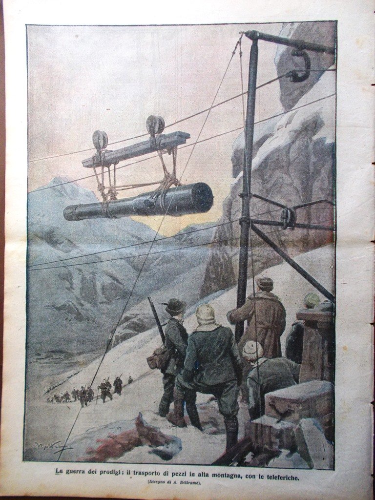 La guerra dei prodigi: il trasporto di pezzi in alta montagna, con le teleferiche (Achille Beltrame)
