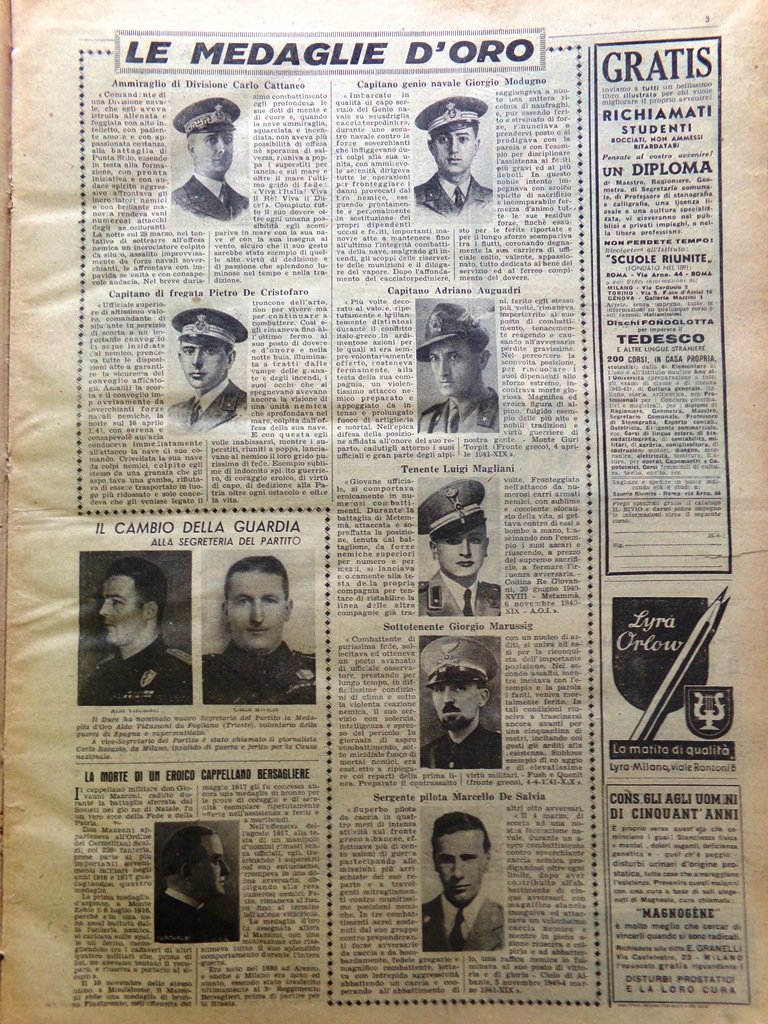 Medaglie d'oro: Carlo Cattaneo, Pietro De Cristofaro, Giorgio Modugno, Adriano Auguadri, Luigi Magliani, Giorgio Marussig, Marcello De Salvia.