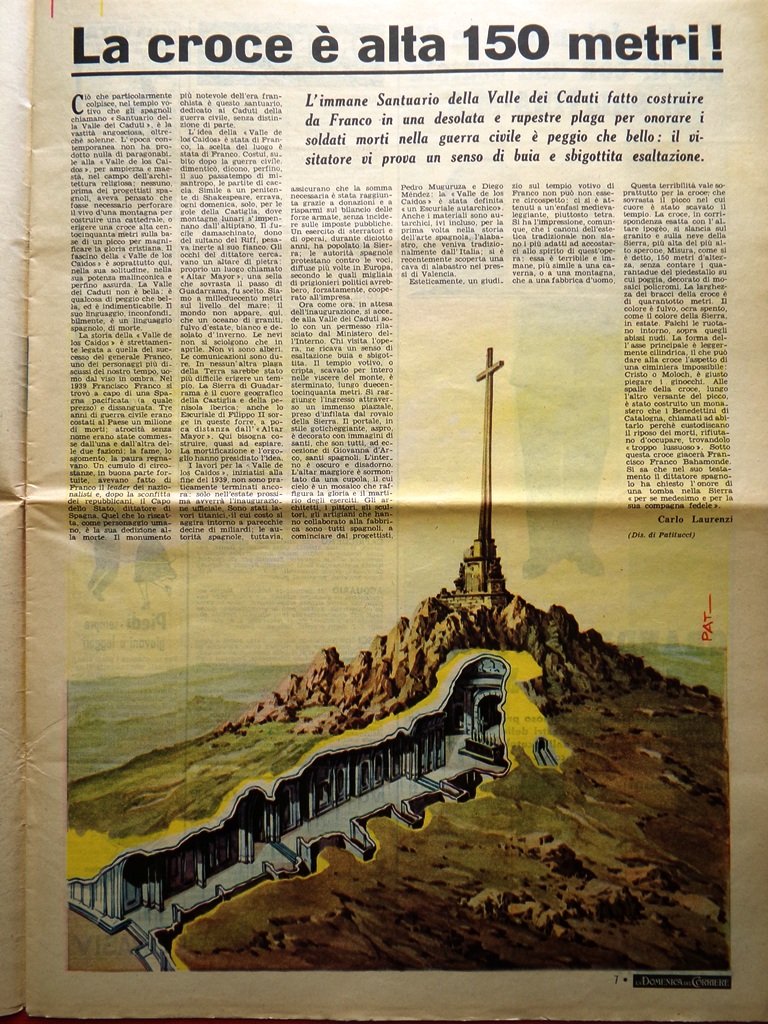 La croce è alta 150 metri nel Santuario della Valle dei Caduti fatto costruire da Franco