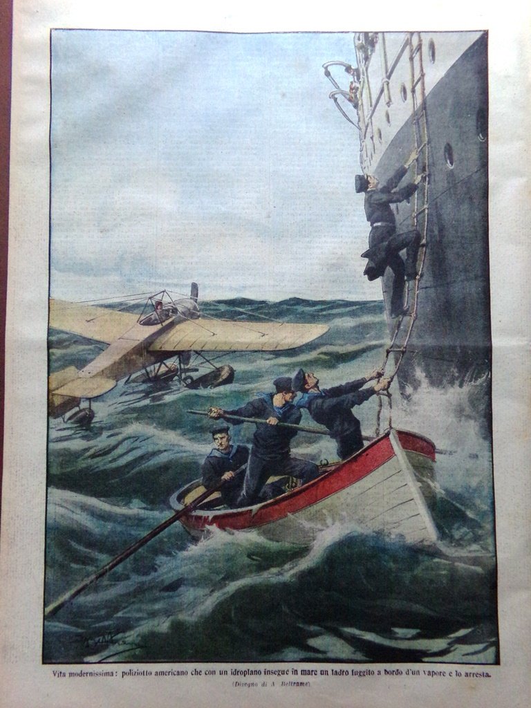 LA DOMENICA DEL CORRIERE Rivista Originale del 5 Aprile 1914 Anno 16 nr. 14 pagine: 16 dimensioni: 38 x 28 cm IN PRIMA PAGINA: Un monte che frana presso Clauzetto (provincia di Udine) travolgendo campi e case e mettendo in fuga gli abitanti (Achille Beltrame) NELL'ULTIMA PAGINA: Vita modernissima: poliziotto americano che con un idroplano insegue in mare un ladro fuggito a bordo di un vapore e lo arresta (Achille Beltrame) ALL'INTERNO: Incontro del Re d'Italia e dell'imperatore di Germania a Venezia Alla vigilia della guerra civile in Irlanda ? La contessa Eloisa Bidischini dell'Oglio, una donna diplomatica Il poeta Mistral La nuova facciata dell'esposizione artistica di Venezia La crisi del lavoro nel cantiere Armstrong a Pozzuoli Gioacchino Rossini e Giovanni Capalbo La piaga dell'analfabetismo sanguina ancora CONDIZIONI DELLA RIVISTA: BUONE, NORMALI SEGNI DEL TEMPO, SOVRACOPERTINE MANCANTI NOTE PARTICOLARI: LEGGERE MACCHIE DEL TEMPO IN ALCUNE PAGINE