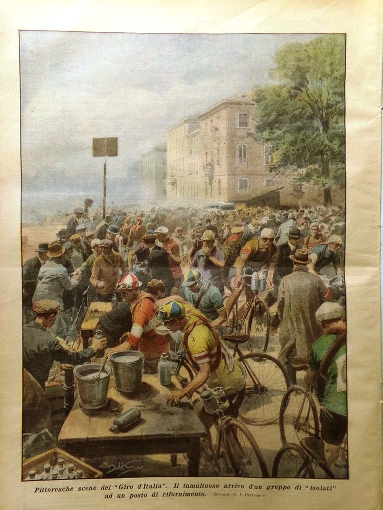 Pittoresche scene del "Giro d'Italia". Il tumultuoso arrivo di un gruppo di "isolati" a un posto di rifornimento (Achille Beltrame)