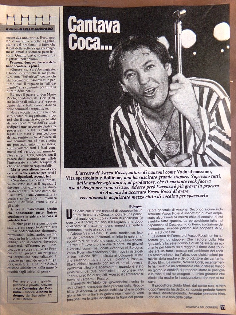 La Domenica del Corriere 5 Maggio 1984 Vasco Rossi Pellegrini Zeri Zaza Cecilio