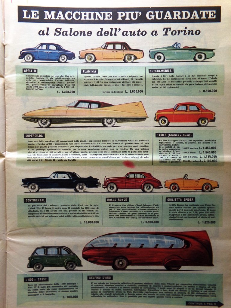 Suini al bagno. Un autocarro, a bordo del quale viaggiano cento piccoli maiali diretti al macello, nei pressi di Magenta (Milano) incrocia un altro camion proprio in quel punto in cui la strada è larga poco più di quattro metri. L'urto tra i due automezzi è violentissimo. Il primo, quello carico di maiali, scaraventato giù per la scarpata, rimane in bilico a pochi centimetri dall'acqua; ma i cento rosei passeggeri sono catapultati nel Naviglio. Tre soli periscono annegati; gli altri sono faticosamente tratti in salvo. Nessuna vittima tra gli uomini (disegno di Walter Molino)