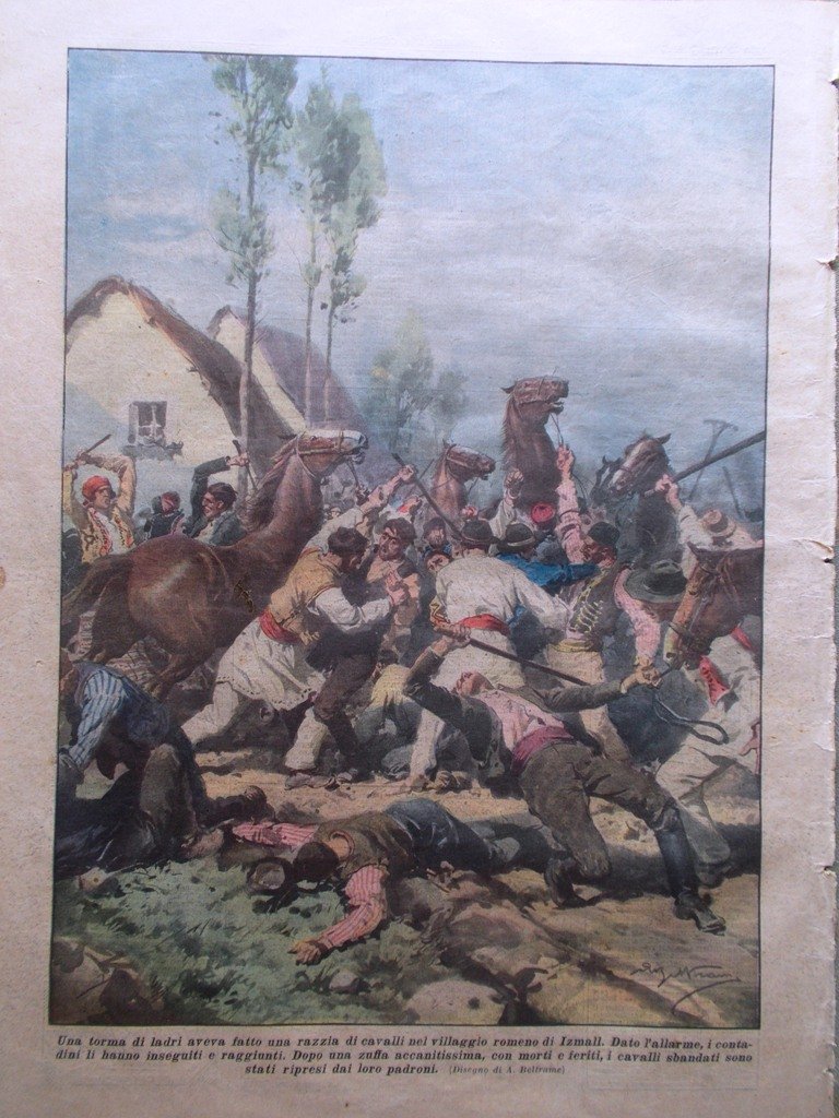 Una torma di ladri aveva fatto una razzia di cavalli nel villaggio romeno di Ismall. Dato l'allarme, i contadini li hanno inseguiti e raggiunti. Dopo una zuffa accanitissima, con morti e feriti, i cavalli sbandati sono stati ripresi dai loro padroni (Achille Beltrame)