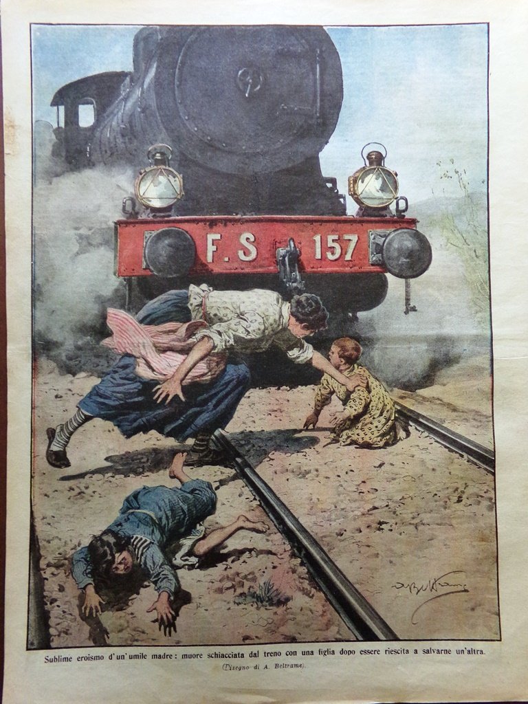 Sublime eroismo d'un'umile madre: muore schiacciata dal treno con una figlia dopo essere riuscita a salvarne un'altra (Achille Beltrame)