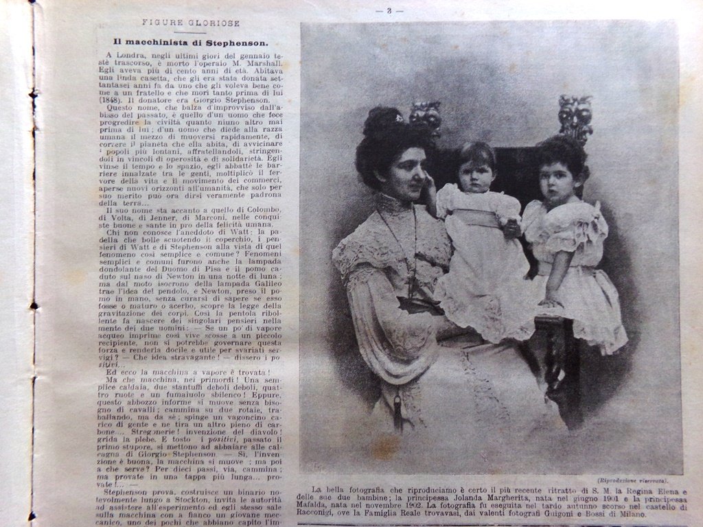 La Domenica del Corriere 7 Febbraio 1904 Stephenson Elena Jolanda Savoia Voghera
