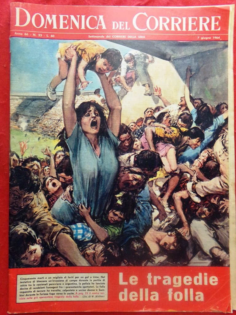 500 morti e un migliaio di feriti per un gol a Lima. Nel tentativo di bloccare un'invasione di campo durante la partita di calcio tra le nazionali peruviana e argentina, la polizia ha lanciato decine di candelotti fumogeni tra i 40 mila spettatori. La folla impazzita di terrore ha travolto e ucciso donne e bambini durante la fuga (Walter Molino)