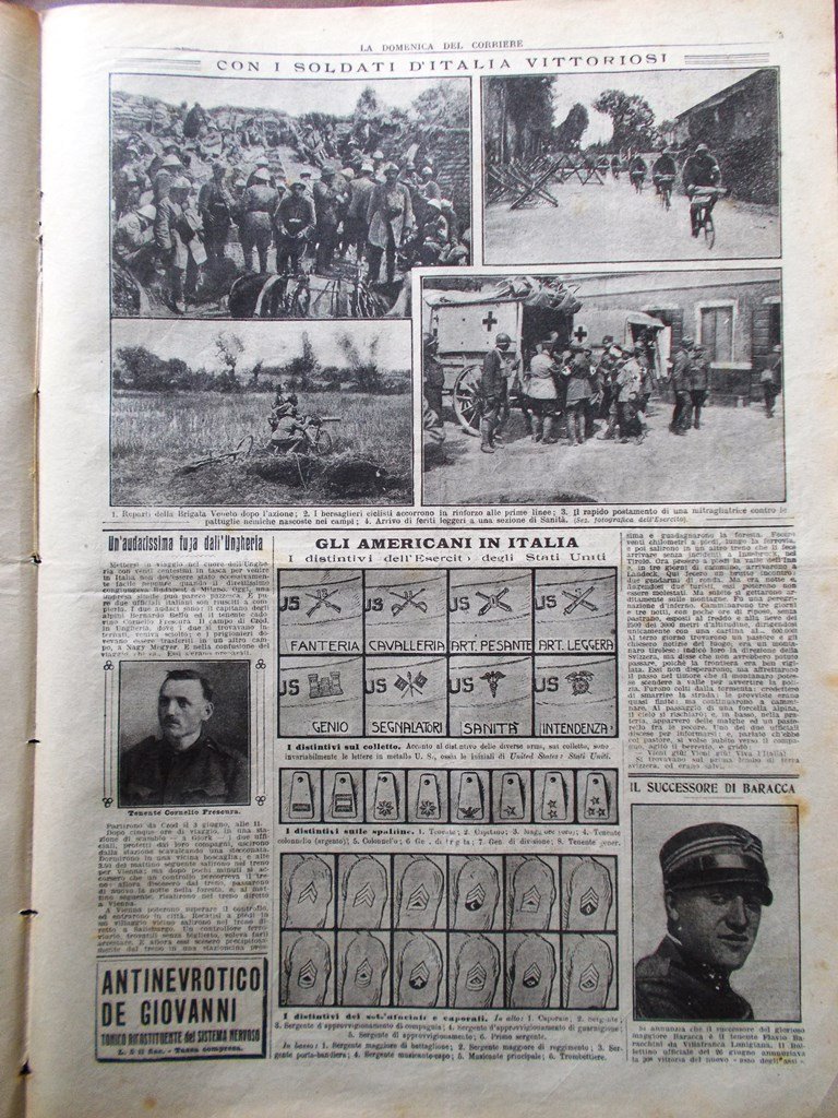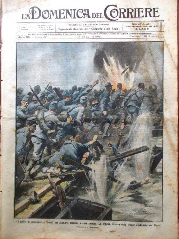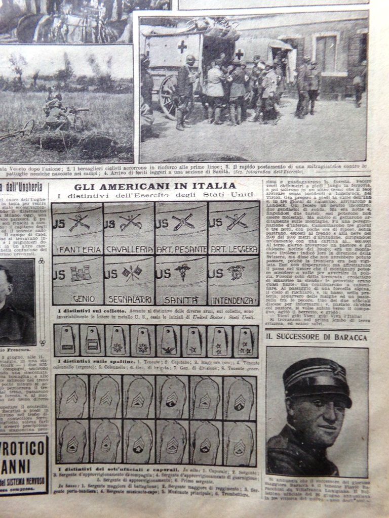 La Domenica del Corriere 7 Luglio 1918 WW1 Montello Baracchini Resnati Americani