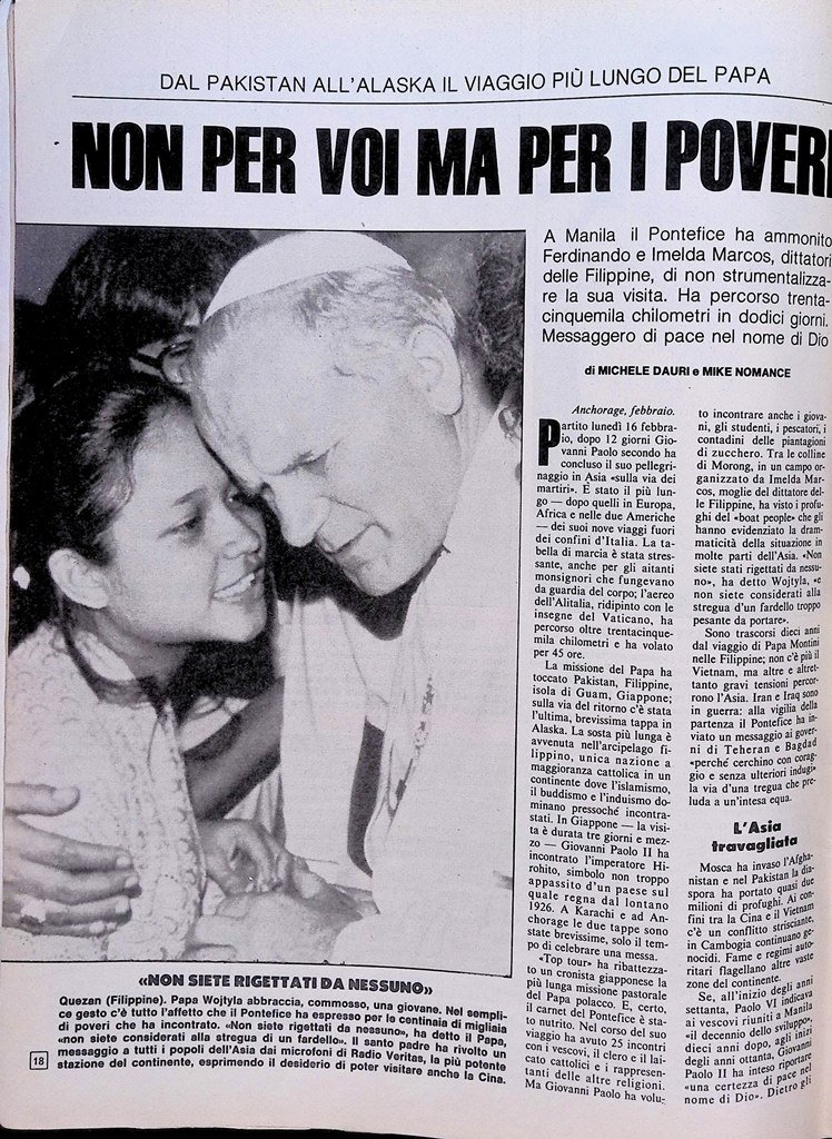 Il Papa durante il suo viaggio a Manila ammonisce il dittatore Marcos e la moglie: "Non sono venuto per voi ma per i poveri"