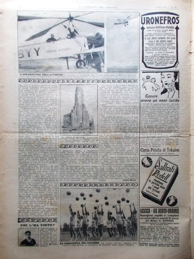 La Domenica del Corriere 7 Ottobre 1928 Incendio Novedades Chichibu Gigante TBC