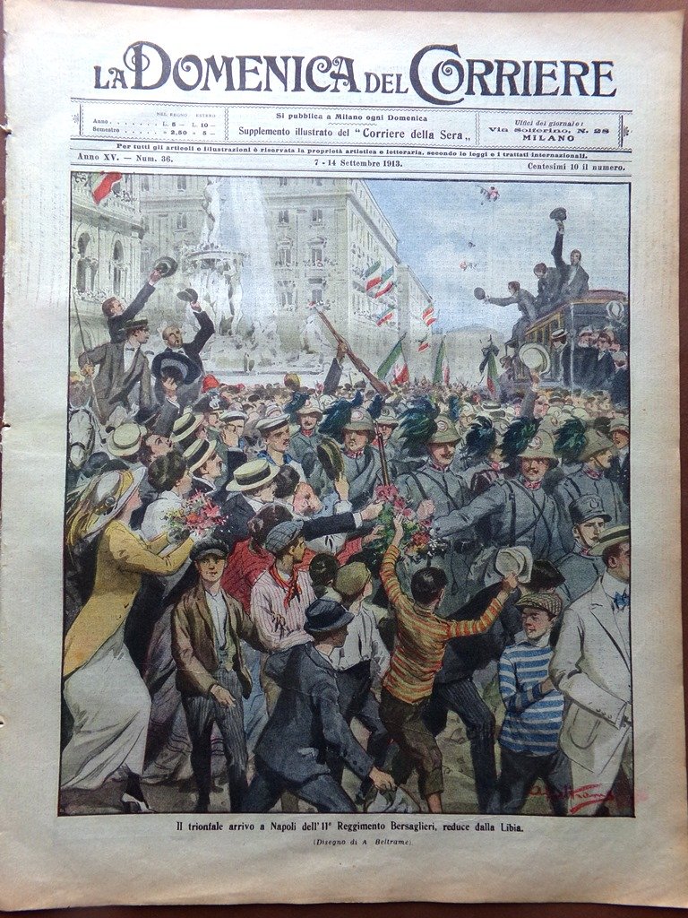 La Domenica del Corriere 7 Settembre 1913 Bersaglieri Libia Goldoni Lunel Boite