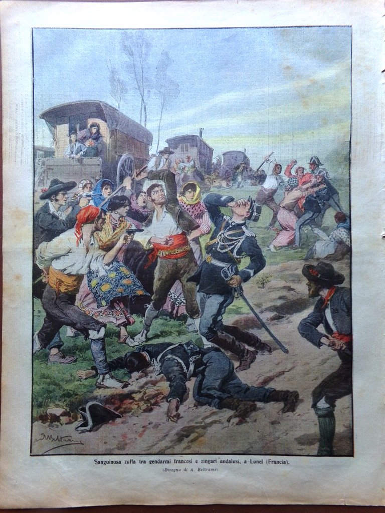 Sanguinosa zuffa tra gendarmi francesi e zingari andalusi a Lunel (Achille Beltrame)