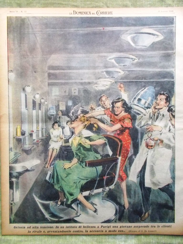 In un istituto di bellezza a Parigi una giovane sorprende tra le clienti la rivale e, avventandosele contro, la acconcia a modo suo (De Gaspari)