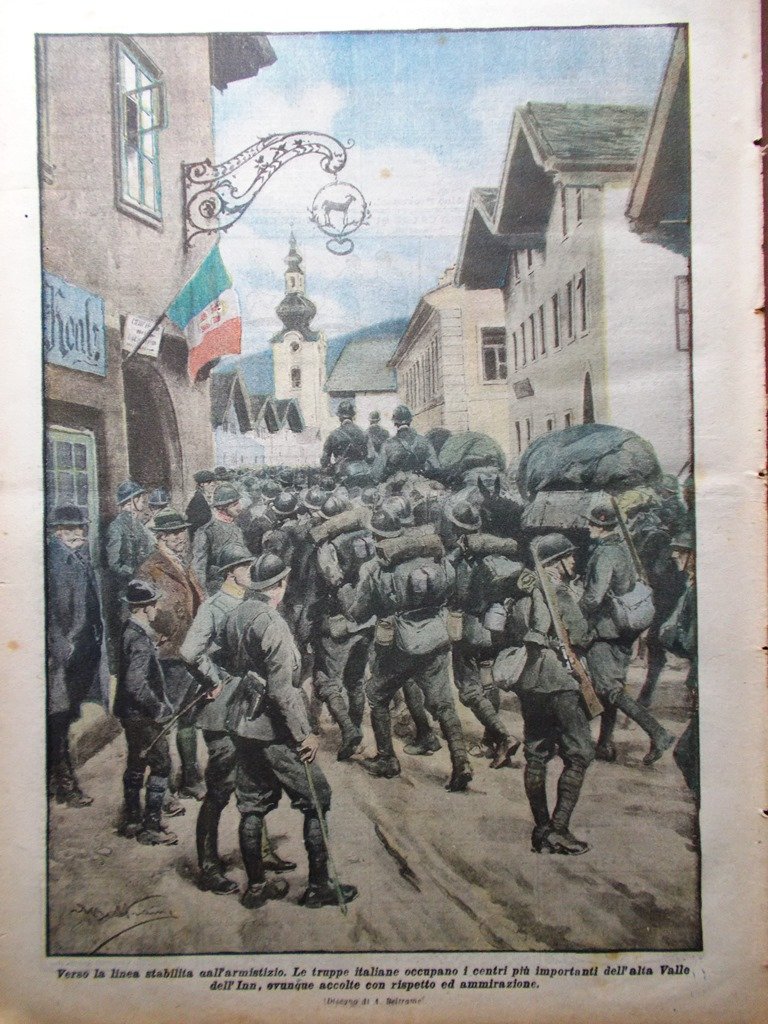 Verso la linea stabilita dall'armistizio. Le truppe italiane occupano i centri più importanti dell'alta Valle dell' Inn, ovunque accolte con rispetto e ammirazione (Achille Beltrame)